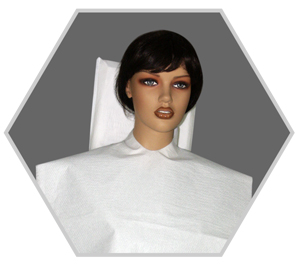 Made of laminated tissue paper and polyethylene. Cellular embossed tissue paper layer on the front surface absorbs and retains more fluid while liquid tight polyethylene layer on the other side does not leak fluid out Colors: Blue, green, pink, purple and white. Different sizes can be produced.